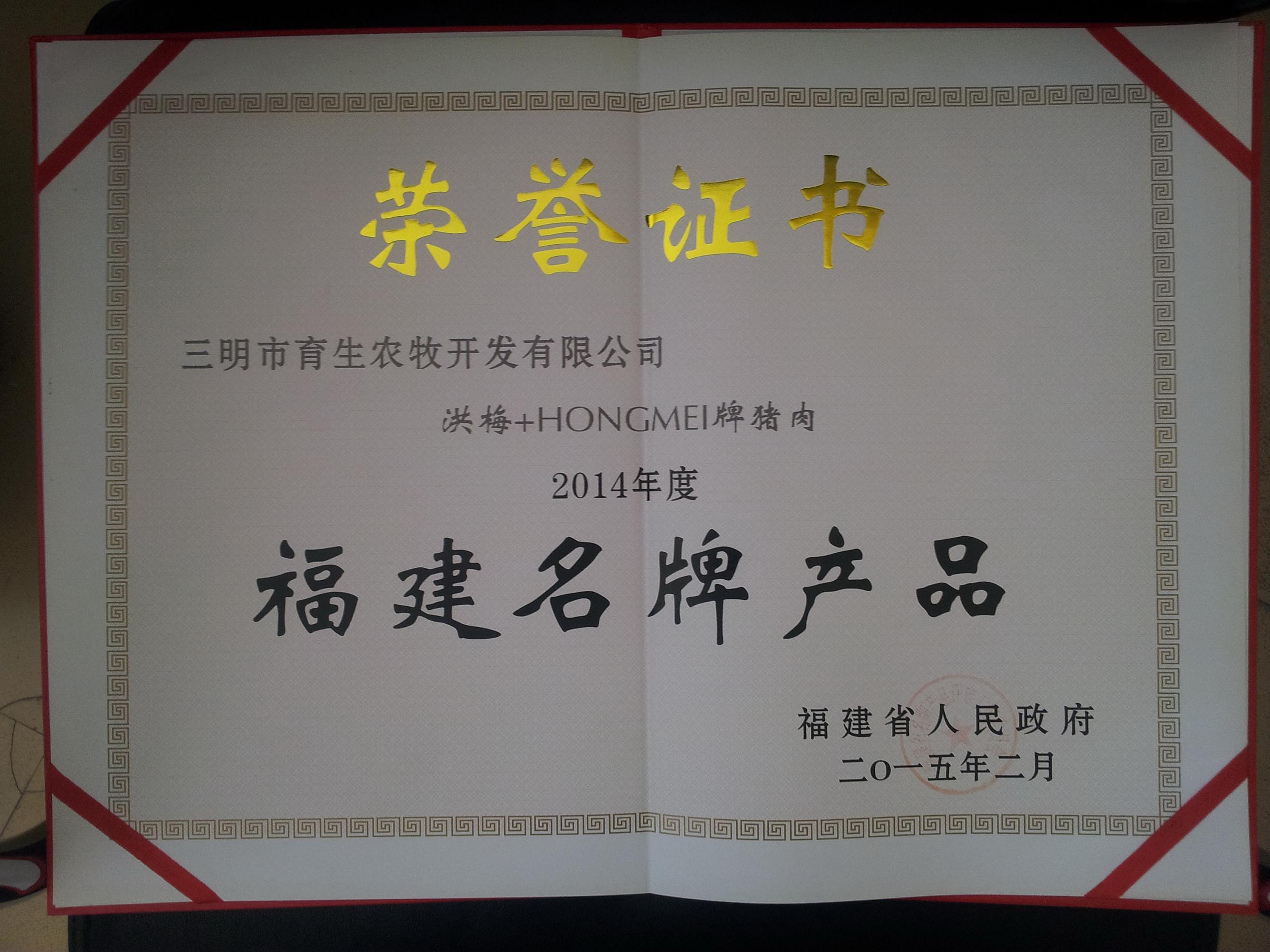 公司養(yǎng)殖基地養(yǎng)殖的豬肉榮獲“福建省名牌產(chǎn)品”稱(chēng)號(hào) 4月1日,公司養(yǎng)殖基地——三明市育生農(nóng)牧開(kāi)發(fā)有限公司養(yǎng)殖的“洪梅+HONGMEI”牌豬肉被福建省人民政府評(píng)為“福建省名牌產(chǎn)品”稱(chēng)號(hào)。