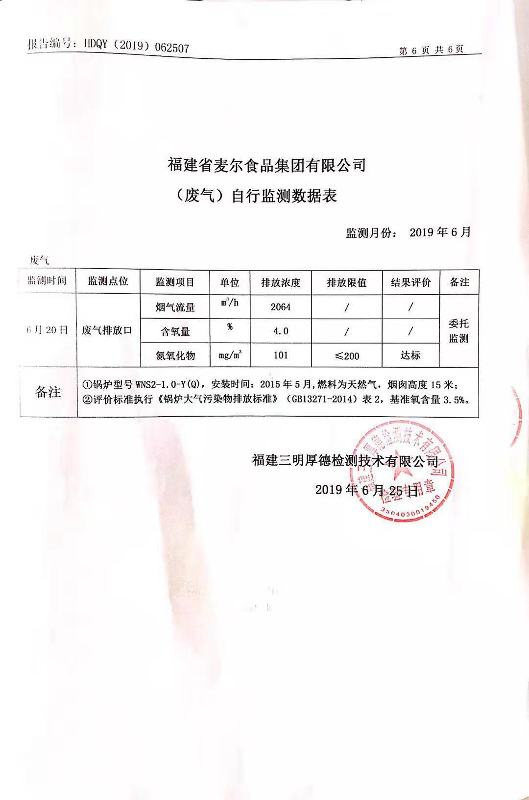 2019年麥爾食品集團(tuán)-環(huán)境監(jiān)測(cè)報(bào)告公示