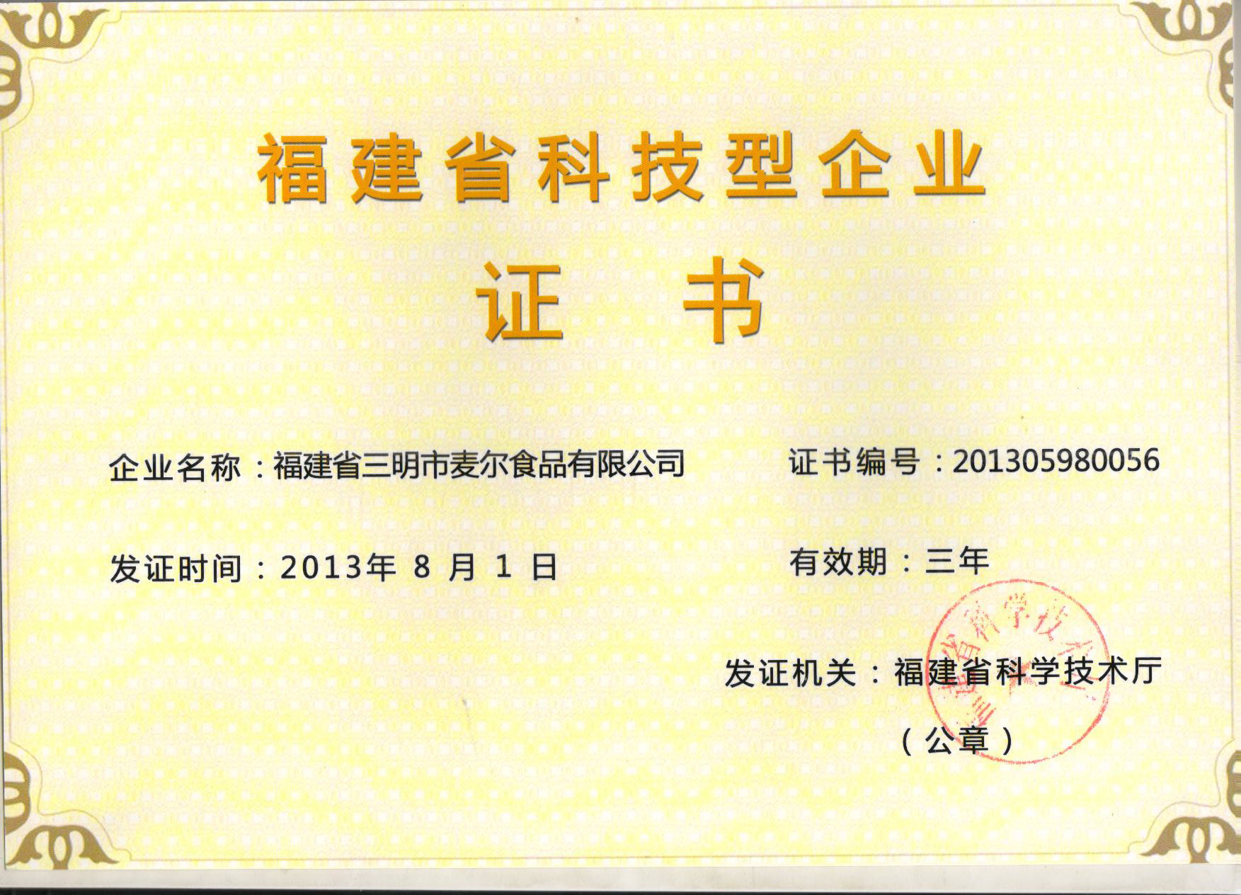 2014年1月9日,我司被福建省科學(xué)技術(shù)廳授予“福建省科技型企業(yè)”稱(chēng)號(hào)。